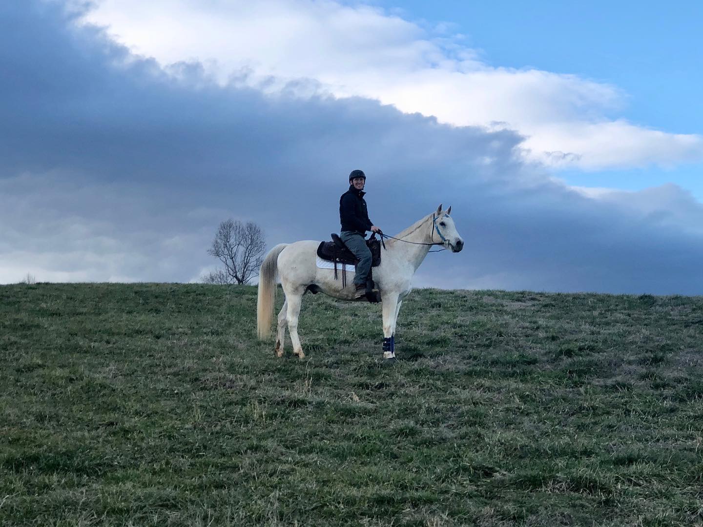 Riding around the farm.